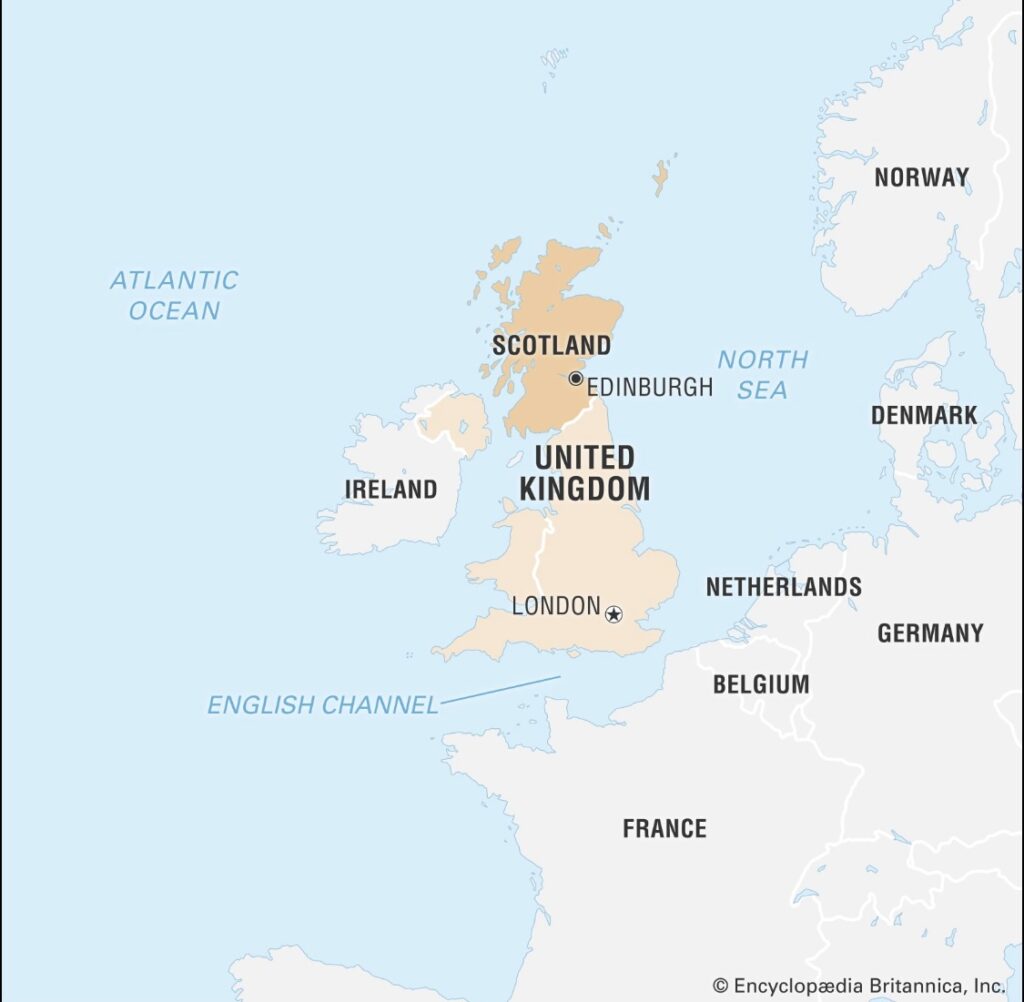 まずはスコットランドの場所ですが、ヨーロッパ大陸の左上の島なのです。